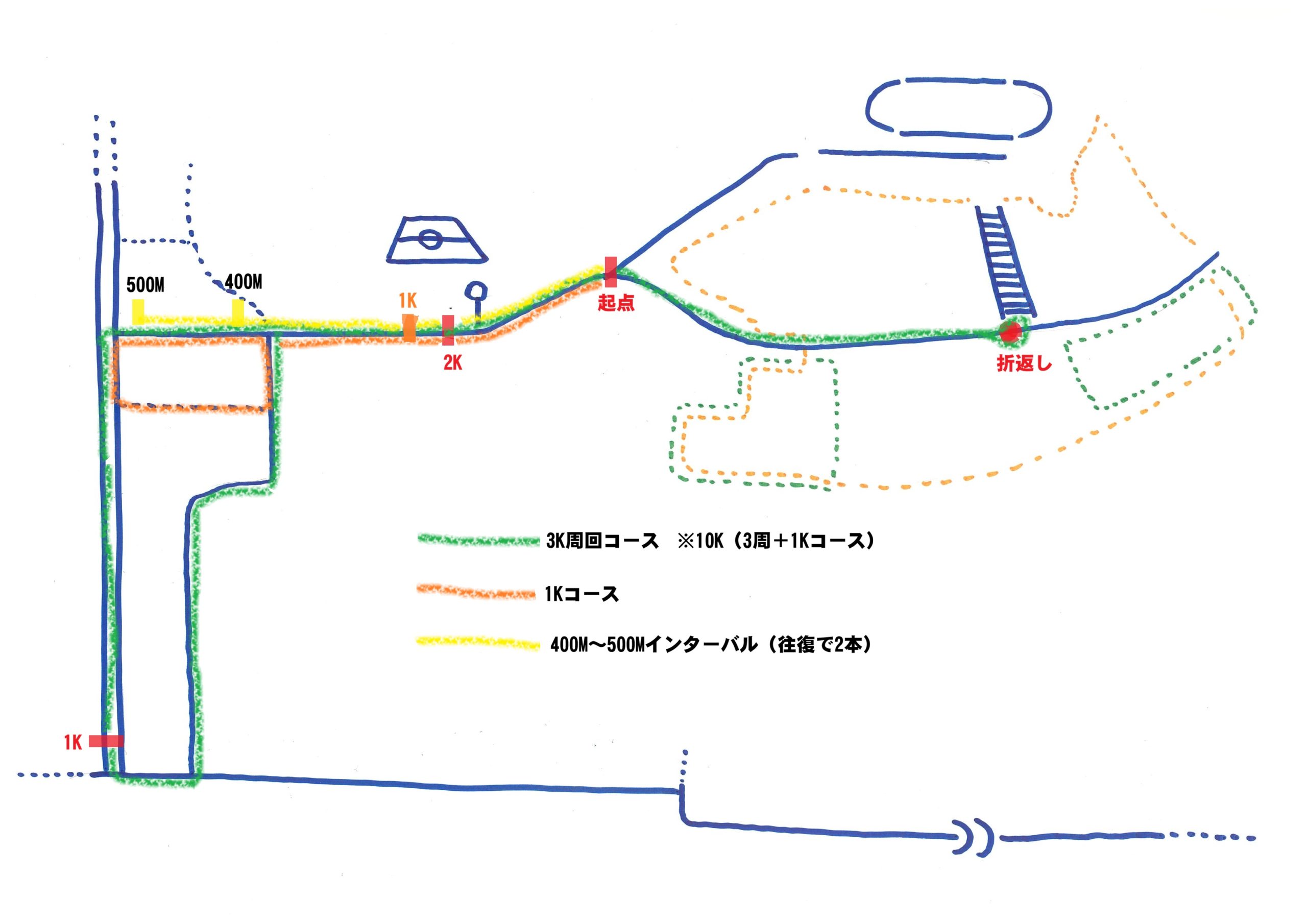 コースマップ(3K周回・1Kコース・400~500Mインターバル)